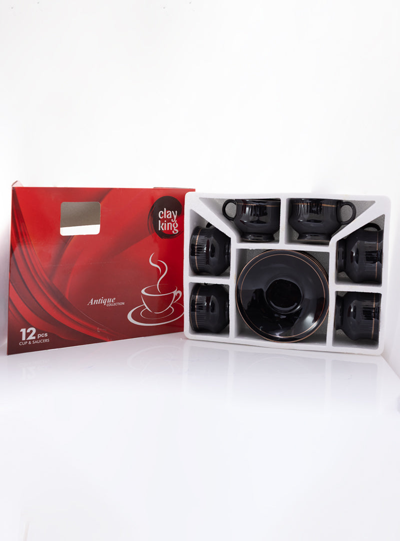 Cup Saucer Black Gold Line